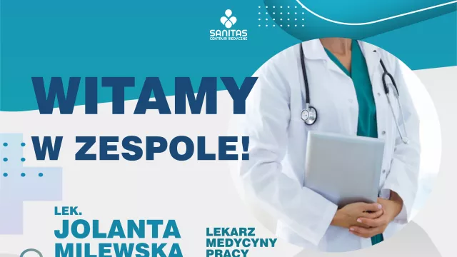 Mamy przyjemność poinformować, że do zespołu Centrum Medyczne Sanitas dołącza: lek. Jolanta Milewska - lekarz medycyny pracy.